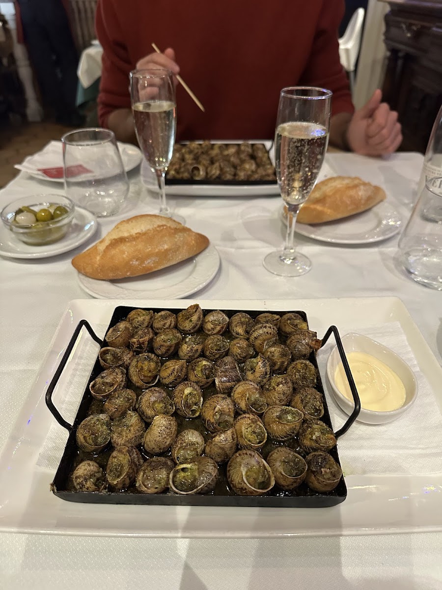 if you want escargot done right, this is the place for you. inside of a clearly old historic building, houses some of the best escargot i have had in my life. service was not only kind, but very personable. the dishes were decent portions (excluding the escargot, which contained around 30-40 snails... yep). the lamb rack was good, but just slightly lackluster in flavor. other than that, no complaints! the dishes were presented beautifully, and the prices came out to only be around 30-40 euro a person, after ordering a drink, appetizer, and entree.